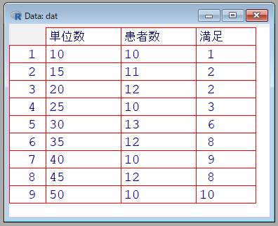 cbind(dat$満足, dat$患者数-dat$満足)